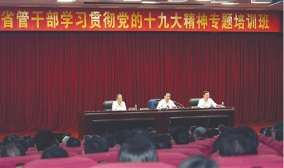 刘赐贵在讲话时说,党的十九大胜利闭幕后,全省上下以多种形式广泛开展十九大精神宣讲活动,掀起了学习宣传贯彻十九大精神的热潮。组织专题培训班开展集中学习,就是要求省管干部带头在整体把握、全面系统的基础上,突出重点、抓住关键,深刻领会和把握党的十九大精神,把着力点放到“六个聚焦”上,学深悟透、掌握核心要义。