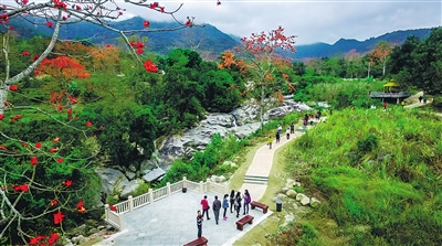 宝山村位于霸王岭山脚,是一个黎族村落。通过美丽乡村建设工作,该村广大干群在创建活动中,逐渐形成了一个共识:即既要精神文明好,又要经济发展快,因此,大家一门心思忙致富、抓发展,促进了经济建设:一是注重发展乡村旅游产业,在旅游高峰期组织群众通过编织黎锦、摆卖土特产品、发展旅游等方式创收,逐步形成特色的乡村旅游产业;二是以“公司+合作社+农户+示范基地”的经营模式,大力发展种养殖产业;三是利用山林、水库、河流等有利的环境来养鹅、养鸭、养蜂及种植南药等,发展林下经济、绿色产业,带动大家建设美丽家园的热情,不断提升当地村民的旅游服务意识和能力,打造具有当地民族特色的旅游品牌。