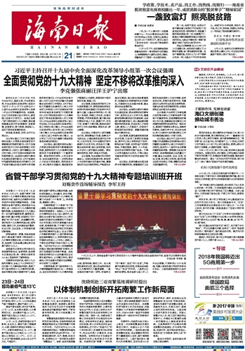 海南日报 头版 001 2017-11-211 2017年11月21日 星期二