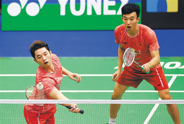 图为中国队选手柴飚(左)/王泽康在比赛中。 新华社记者 卢炳辉 摄
