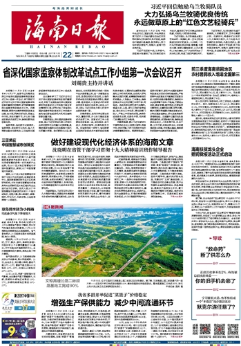 海南日报 头版 001 2017-11-221 2017年11月22日 星期三