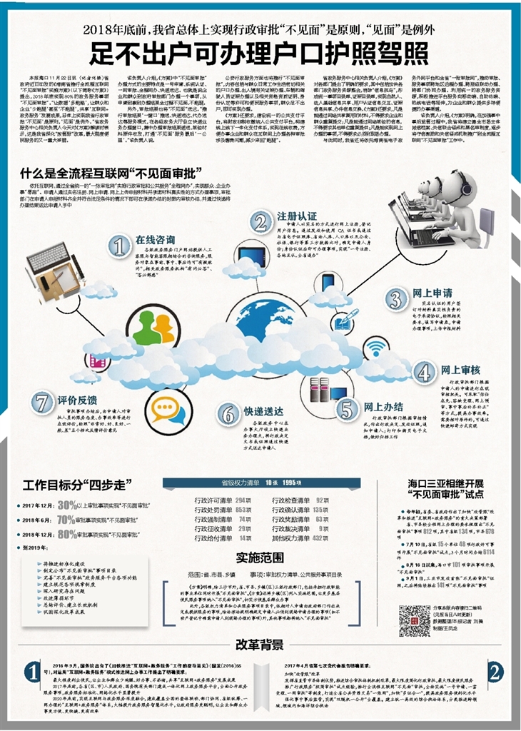 7月10日,省级15个单位48项行政许可事项开展“不见面审批”试点,3个月时间办结6114件