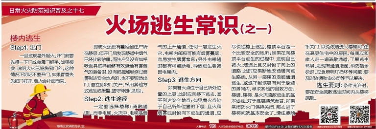 逃生要则:条件允许时,要在安全疏散逃生时间内从楼梯疏散。