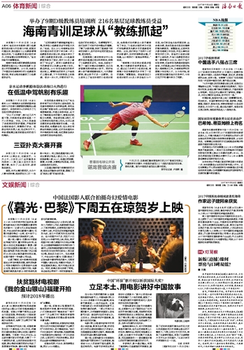 海南日报报业集团旗下媒体: 海南日报 |南国都市报 |南海网 |南岛晚报 |证券导报 |法制时报 |海南农垦报 设为首页