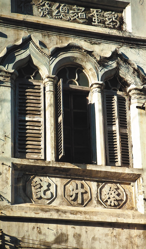 象征、比喻的手法在传统建筑装饰中得到了充分的运用,而多种风格的汇集吸收则为传统建筑审美注入不同体验,如骑楼的女儿墙,多以西方文艺复兴、巴洛克及阿拉伯、印度装饰风格为主,表面装饰纹样既有植物花卉及螺旋形图案,用砖雕及彩瓷装饰,也有传统如意纹及宝瓶式瓷栏杆,给视觉和感官带来冲击交融。