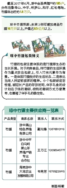 参与设计琼中竹狸包装的工作人员介绍,竹狸以琼中地名加上产品名字,由于琼中竹狸在市面上已经小有名气,琼中竹狸这个名字带有浓浓的地理标志,在人们熟悉的情况下更有利于推广和传播。