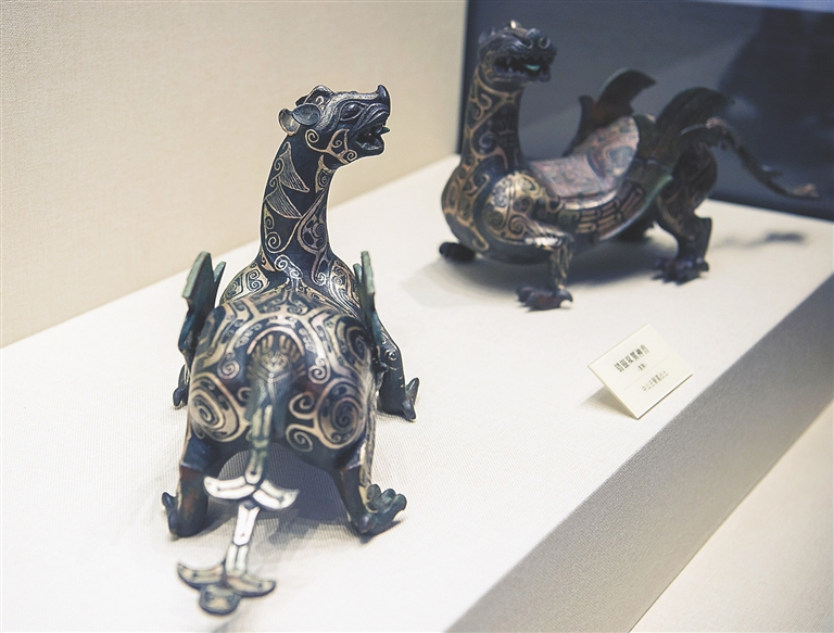 这是中山国王陵陈列馆中展出的双翼神兽。 日前,位于石家庄市平山县的中山国王陵陈列馆完成布展工作,即将对外开放。古中山国位于今河北省中南部,始建于春秋末年,战国中期达到鼎盛,后为赵国所灭,存续210余年。中山古城遗址于1973年在河北省石家庄市平山县三汲乡一带被发现。 新华社发