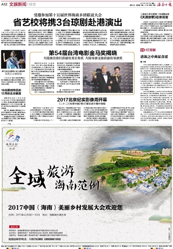 | 海南日报 文娱新闻综合 012 2017-11-271 2017年11月27日 星期一 |