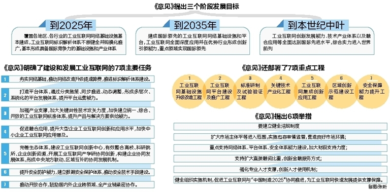 《意见》指出,要深入贯彻落实党的十九大精神,以全面支撑制造强国和网络强国建设为目标,围绕推动互联网和实体经济深度融合,聚焦发展智能、绿色的先进制造业,构建网络、平台、安全三大功能体系,增强工业互联网产业供给能力,持续提升我国工业互联网发展水平,深入推进“互联网+”,形成实体经济与网络相互促进、同步提升的良好格局,有力推动现代化经济体系建设。