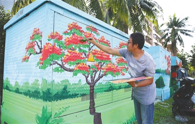 据了解,为了增加城市美感和特色,三亚市住建局组织人员对凤凰路、新城路、育新路、榆亚路等10多条道路的变电箱和通信设施进行彩绘美化,分别以“凤凰花语”“椰岛绿洲”“四季阳光”“海湾天堂”为主题,通过对变电箱和通信设施进行符合街道景观的风景图设计,运用抽象、写实、多彩、简洁等绘制方法,体现城市美化的细节。