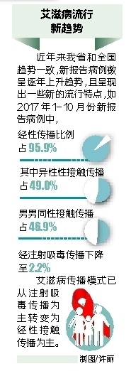 男性同性性行为人群感染率持续升高,青年学生、老年人感染人数增加较快,已成为我省当前艾滋病防控的突出问题。