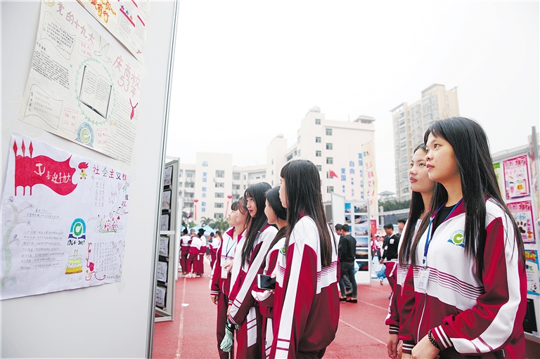 近日,海南省商业学校举办庆祝校庆53周年校园文化艺术节活动,开展了多项以“践行十九大精神”为主题的比赛,受到众多学生的欢迎。