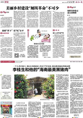 他19岁时来到海南打工赚钱,卖过报纸、送过桶装水等等。在打工积累了一些资金后,他决定饲养黑猪。“海南黑猪的品质非常好,加上海南人比较喜欢吃黑猪肉,这个肯定会有市场的。”这就是李桂生最初简单的创业念头。