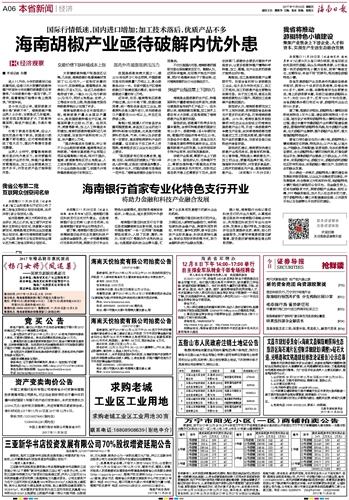 海南日报 本省新闻经济 006 2017-11-301 2017年11月30日 星期四