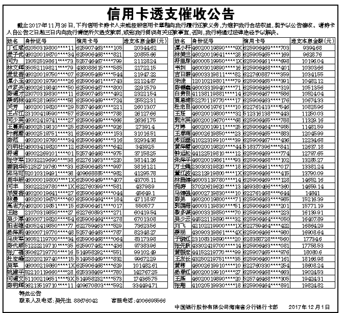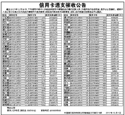 信用卡透支催收公告