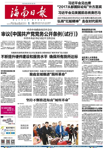 海南日报 头版 001 2017-12-011 2017年12月01日 星期五