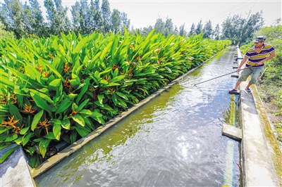 11月30日,工作人员在对万宁市东澳镇镇墟人工湿地进行管护。该湿地占地7亩,日处理生活污水能力1600吨,总投资160多万元。生活污水流经人工湿地后,湿地利用土壤、人工介质、植物、微生物的物理、化学、生物三重协同作用,对污水进行处理。据了解,人工湿地处理费用低,而且处理效果好。目前,万宁市各乡镇已经基本建成人工湿地。本报记者 袁琛 摄