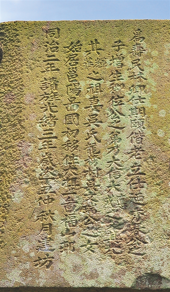 从落款可知,这座“期颐偕老”牌坊是1863年各级官员层层上奏清廷后,直到1877年才为这对百岁夫妻林卿仕和吴氏竖立牌坊的。此事为何拖了14年之久,后人不得而知。