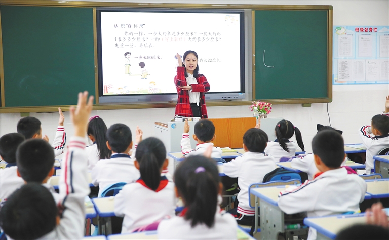 “我希望引导学生自己去发现问题、思考问题,通过自己动手体会和感受。”为此,她前后试课调整了6次,修改模具的长度、高度,调整自己的手势、说话的语气,提高孩子们的上课积极性……在此过程中,她精益求精,最终获得了此次“优课”评比的一等奖。