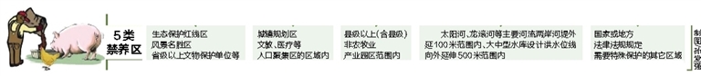 《规定》要求,在限养区,禁止新建、扩建畜禽养殖场(小区)和养殖专业户的区域。已建成或在建的畜禽养殖场(小区)和养殖专业户应当及时对污水、畜禽粪便和尸体等进行收集、贮存、清运和无害化处理,在2018年底前完成综合治理,污染物排放符合国家排放标准和总量控制要求。对养殖污染严重、群众反映强烈的规模化畜禽养殖场(小区)和养殖专业户逾期无法完成治理或经治理仍达不到相关排放标准的,责令搬迁或者依法予以关停。
