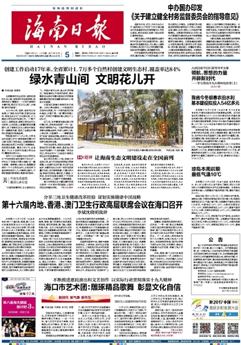 海南日报 头版 001 2017-12-051 2017年12月05日 星期二