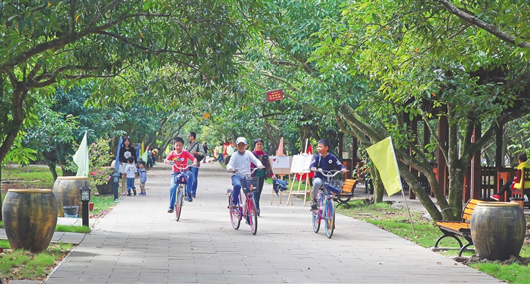 今天下午,参加全省文明生态村创建工作现场经验交流会的代表们,赴海口市秀英区的美社村、美富村、冯塘村、冯塘绿园、施茶石斛种植基地,实地考察海口文明生态村创建成果,切身体会了“村在林中、院在绿中、人在景中”的美妙感受。