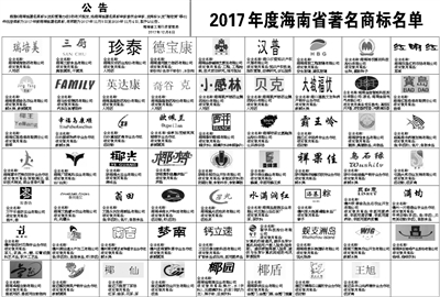 2017年度海南省著名商标名单