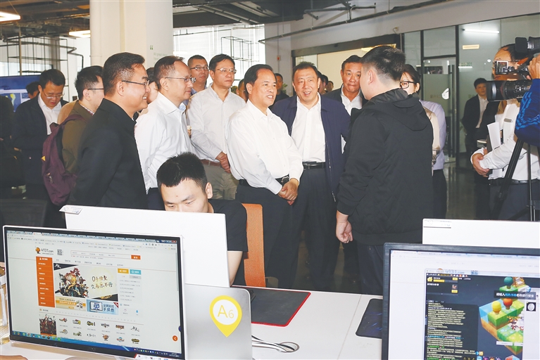 刘赐贵一行实地走访了“蘑菇头”“智医宝”“科创360”“魔脑”等正在园区孵化加速发展的创业团队和企业,与创业青年们深入交流,询问他们的发展规划和现实问题,鼓励大家借助孵化平台充分施展才干,推动企业快速成长壮大。