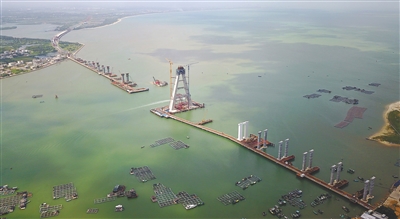 而连接海口的跨海大桥——铺前大桥也在抓紧施工。