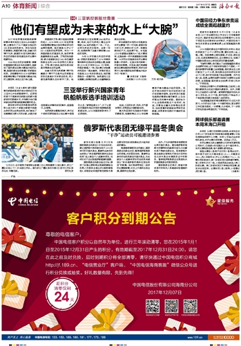海南日报 体育新闻综合 010 2017-12-071 2017年12月07日 星期四