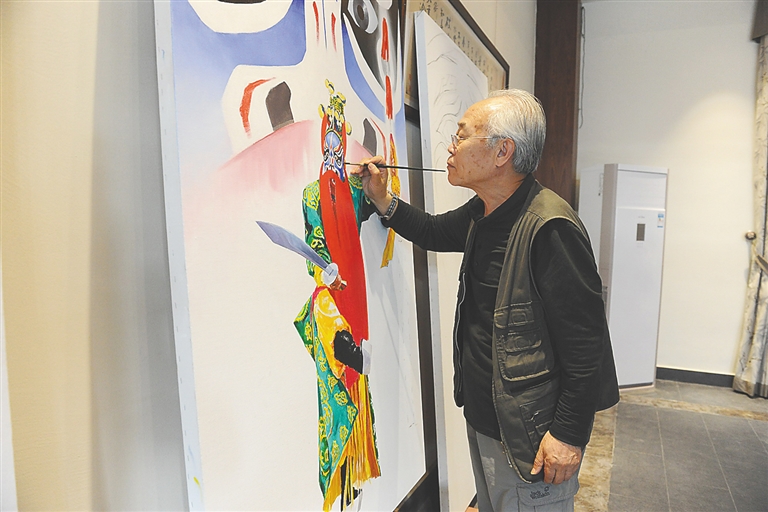 蘸墨、提笔,在蓝脸的窦尔敦眼珠上细细描绘……昨天下午,在位于澄迈县大丰镇的富力·红树湾小区内,中国美术家协会会员、东北师范大学美术学院教授李齐飞正在创作油画。这位画龄长达60年的老画家即将迎来一张特别的“聘书”。