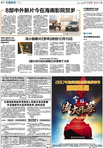 海南日报 文娱新闻综合 019 2017-12-081 2017年12月08日 星期五