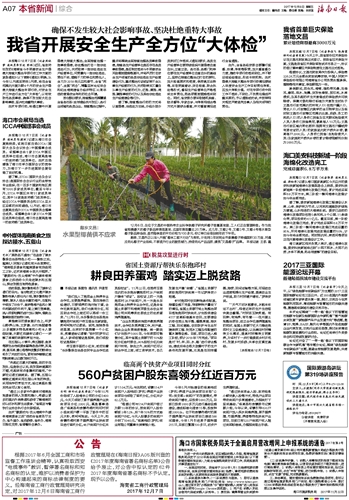 海南日报 本省新闻综合 007 2017-12-081 2017年12月08日 星期五