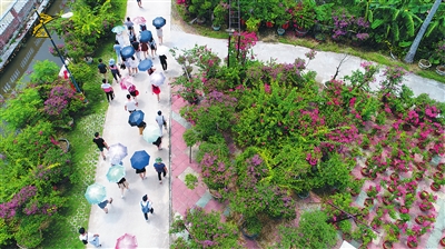 溪边的变化,是万宁市推进美丽乡村建设的一个缩影,它是村党支部在环境卫生综合整治的基础上,抓住发展机遇,抢先建立起的“三角梅”培育基地,以“发展合作社,创造美丽乡村之路”为理念,推行“合作社+基地+农户”的经营模式,美了乡村环境,鼓了农民的钱袋子。