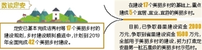 据悉,今年,定安已基本完成洁秀村、仙屯村、美钗坡村、龙梅村、章塘村、红花岭村、久温塘村等17个美丽乡村的建设规划,乡村建设顺利推进中,计划到2019年全面完成42个美丽乡村建设。