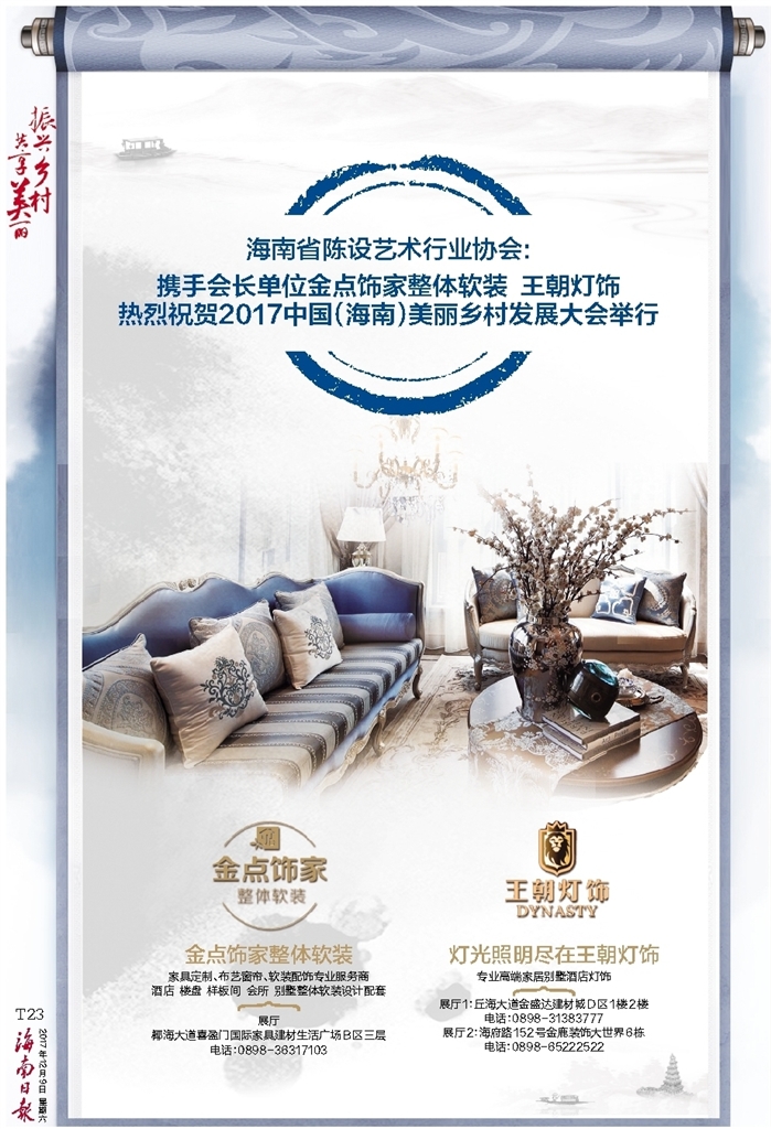 海南省陈设艺术行业协会:携手会长单位金点饰家整体软装 王朝灯饰 热烈祝贺2017中国(海南)美丽乡村发展大会举行