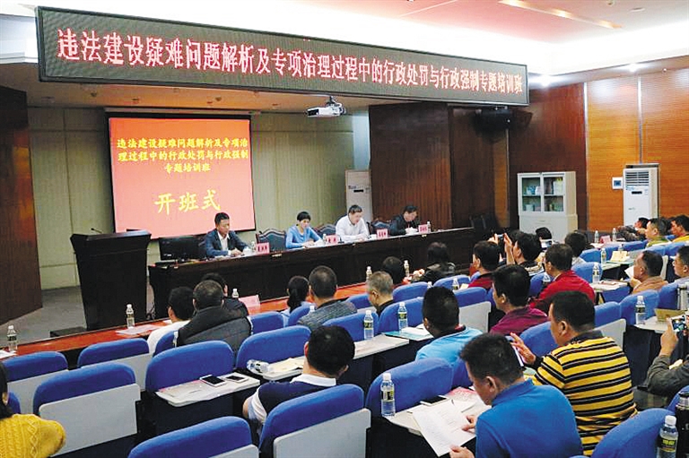 培训内容上,主要包含海口市违法建设政策及规定讲解、违法建设的政策解析、违法建设专项治理的行政处罚、违法建设专项治理的行政强制、违法建设专项治理的案例介绍5个方面。培训期间,还安排了分组研讨,要求参加培训的人员就如何做好分类处置、“人、房、地”三清、“无违建”创建等内容,联系违法建筑整治工作实际结合本单位职能职责,提出问题,同时拿出具体措施及意见建议。