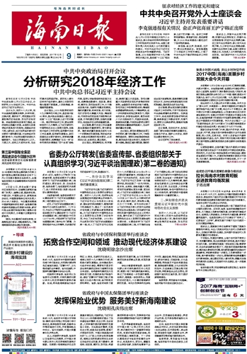 | 海南日报 头版 001 2017-12-091 2017年12月09日 星期六 |