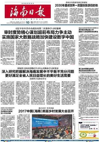 海南日报 头版 001 2017-12-101 2017年12月10日 星期日