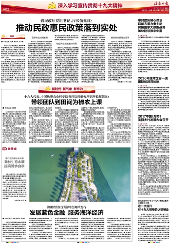 海南日报 深入学习宣传贯彻十九大精神 002 2017-12-101 2017年12月10日 星期日