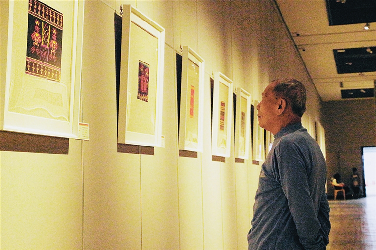 54幅纹路清晰、色彩艳丽的黎锦作品,在柔和的灯光下散发出质朴而不失优雅的历史风韵,传递着厚重又不乏灵动的艺术气息。