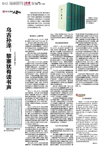 元朝初年的乌古孙泽,青年时参与军务,因为善谋敢当得到朝廷认可,后来担任广西两江道宣慰副使、海北海南廉访使等职务,给海南带来不少实质性影响。他倡导设立“寨学”,在推动海南黎族地区教育方面功不可没。乌古孙泽因为宦绩突出,不光被百姓记住,还成为后世文学作品歌颂的人物。
