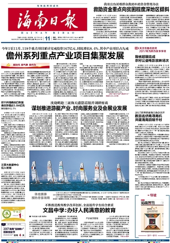 海南日报 头版 001 2017-12-111 2017年12月11日 星期一