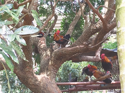 “会上树的鸡”真的会飞上树,是五指山特有的有机山鸡,因其养殖模式为深山野生放养,善于飞跃,野性十足,时常飞到高高的树上去。它们生长在高海拔五指山腹地,喝着清澈的泉水,吃着草丛间野生的昆虫,披着五彩的羽衣,拖着长长的尾巴,在空气清新的热带雨林中自由漫步,俨然是五指山中名副其实的“山凤凰”。