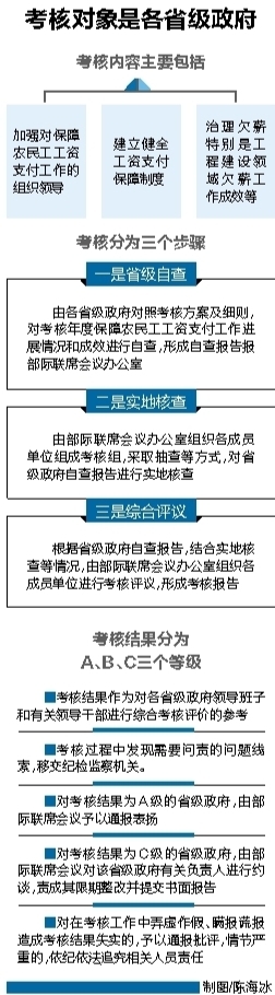 考核工作在国务院领导下,由解决企业工资拖欠问题部际联席会议负责实施,部际联席会议办公室具体组织落实。