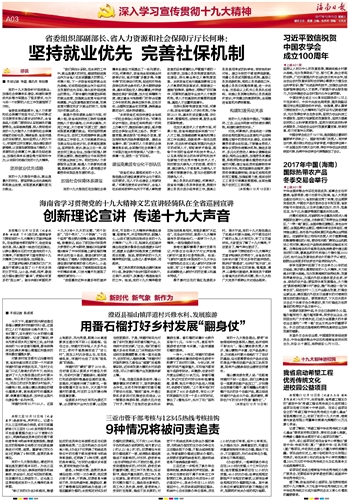海南日报 深入学习宣传贯彻十九大精神 003 2017-12-131 2017年12月13日 星期三