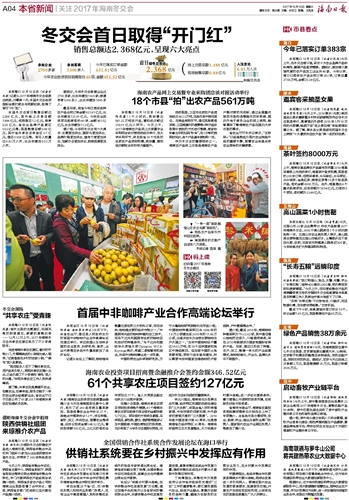 海南日报 关注2017年海南冬交会 004 2017-12-131 2017年12月13日 星期三