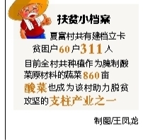 据悉,夏富村共有建档立卡贫困户60户311人。目前全村共种植作为腌制酸菜原材料的蔬菜860亩,酸菜也成为该村助力脱贫攻坚的支柱产业之一。