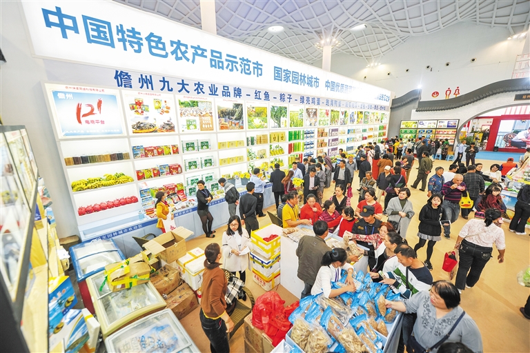 儋州目前着力打造的九大品牌农业主要为海头地瓜、光村沙虫、红鱼、蜜柚、儋州鸡、跑海鸭蛋、绿壳鸡蛋、黄皮和儋州粽子。冬交会上,儋州九大农业品牌的惊艳亮相让儋州馆成为市县展区一大亮点,丰富的展品、独具特色的农产品博得了参观者的阵阵好评,也吸引众多客商前来参观和洽谈。