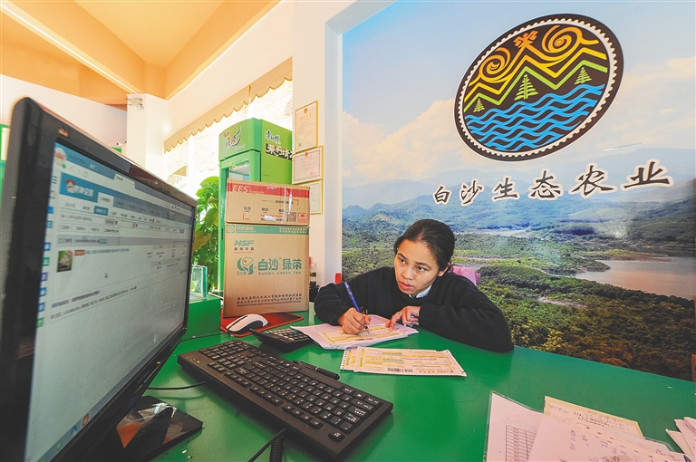 “想买东西,在家用手机下单就能完成,可方便了!”一位村民告诉记者,去年三月白沙县开始发展农村电商以来,农村淘宝平台开到了门口,购买家具、家电、衣服、书籍、农资等,在村口就能收取包裹,过上与城市一样便捷的网购生活。